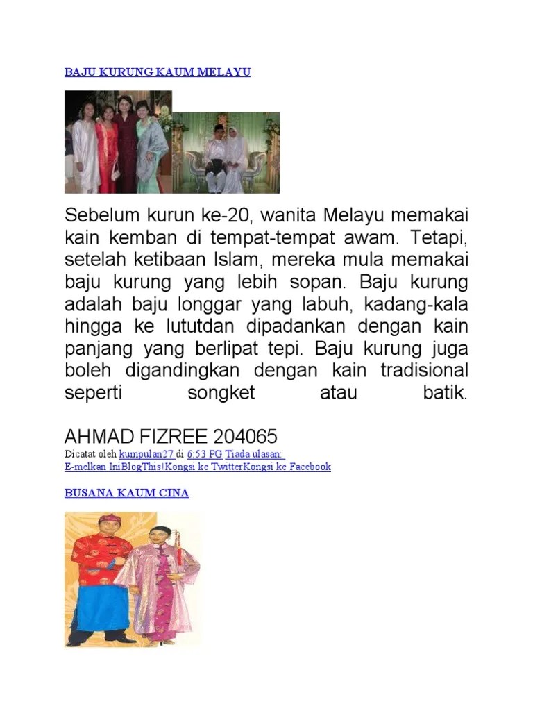 Barang kemas merupakan barang perhiasan badan yang boleh didapati dalam pelbagai bentuk, saiz dan warna yang berasaskan logam dan jugabukanlogam. Berikut merupakan contoh pakaian tradisional melayu lelaki.kecuali. Play this game to review arts. Pakaian tradisional cina dan perhiasan diri part 2part 2pakaian tradisionalcinawanita> pakaian wanita cina. > mempunyai 2 potongan iaitu labuh atau si.